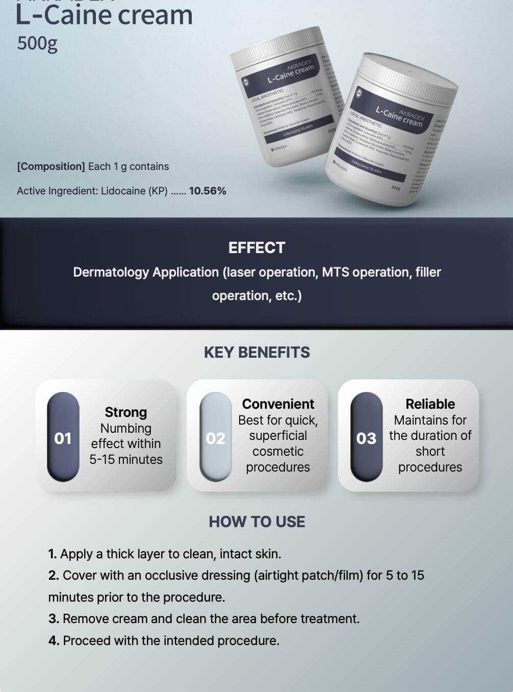 Numbing cream used before laser treatments, microneedling, filler injections, minor dermatologic procedures and more.